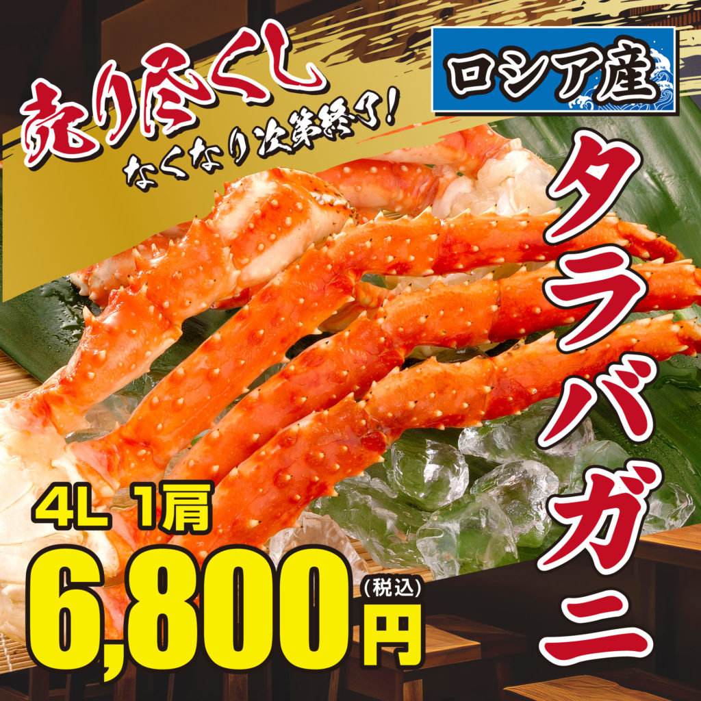 ▶ タラバガニ(ロシア産)4L 1肩 :6,800円(税込)