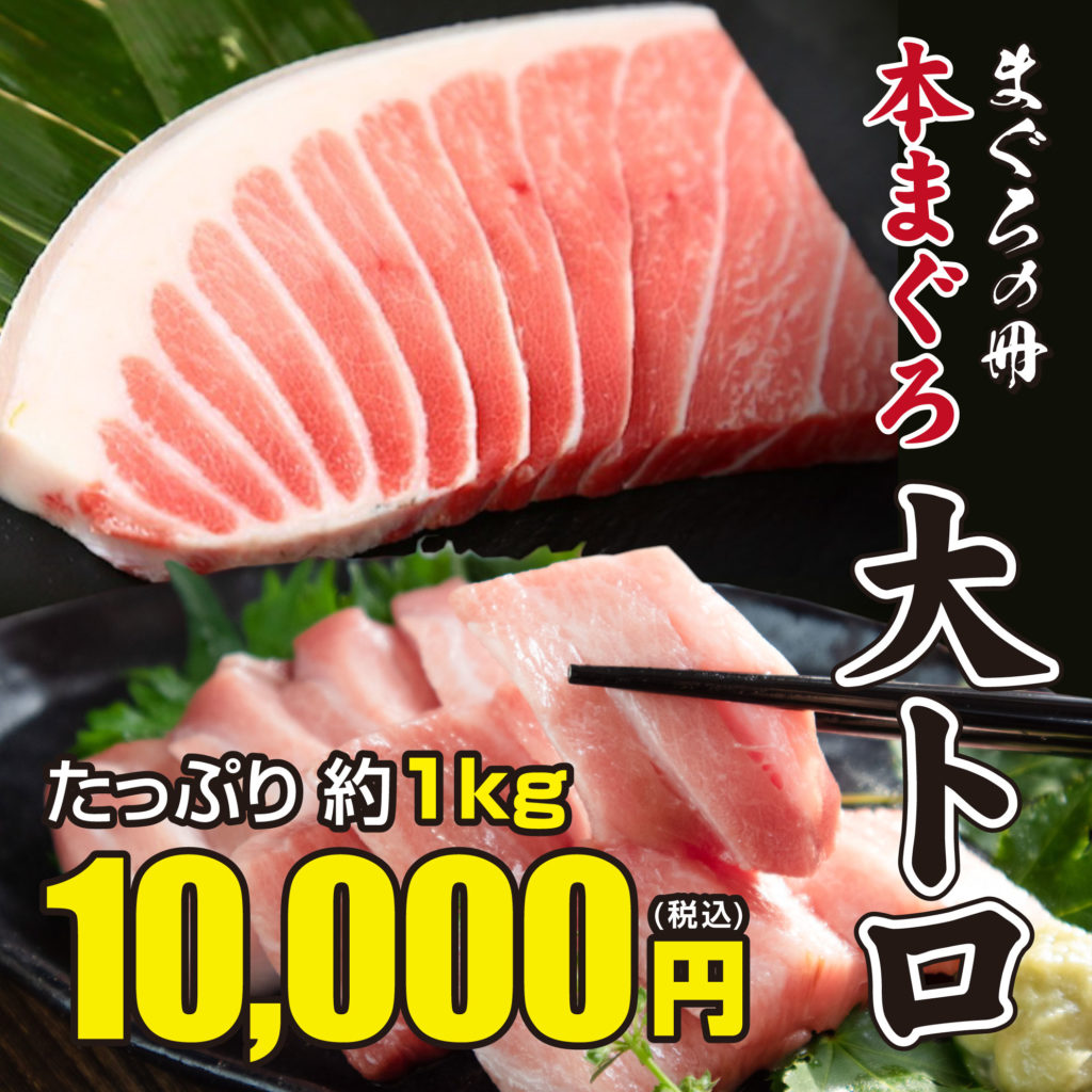 ▶ 本まぐろ大トロ たっぷり約1kg :10,000円(税込)
