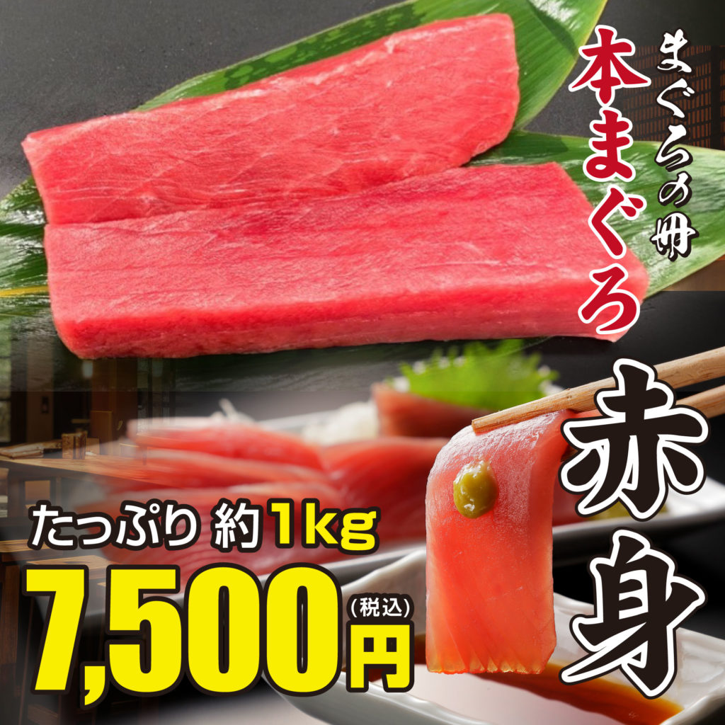 ▶ 本まぐろ赤身 たっぷり約1kg :7,500円(税込)